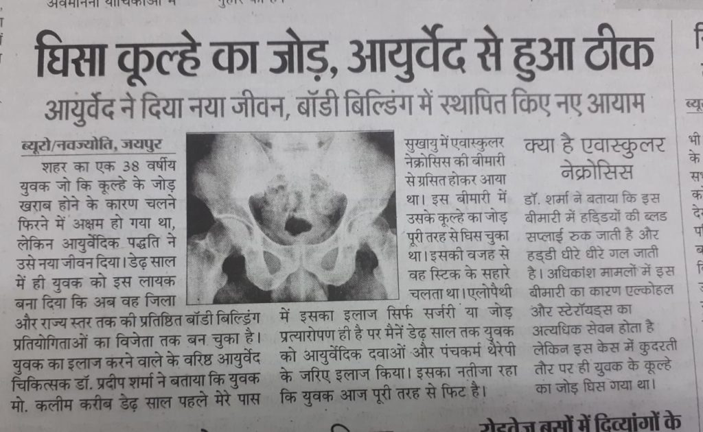 Vaidya Dr. Pardeep Sharma is M.D. in Ayurveda from prime institution of Ayurveda- National Institute of Ayurveda. Vaidya Dr. Pardeep is providing the person who first time reversed the – progressive cases of Avascular Necrosis through Ayurveda and Panchakarma treatment.